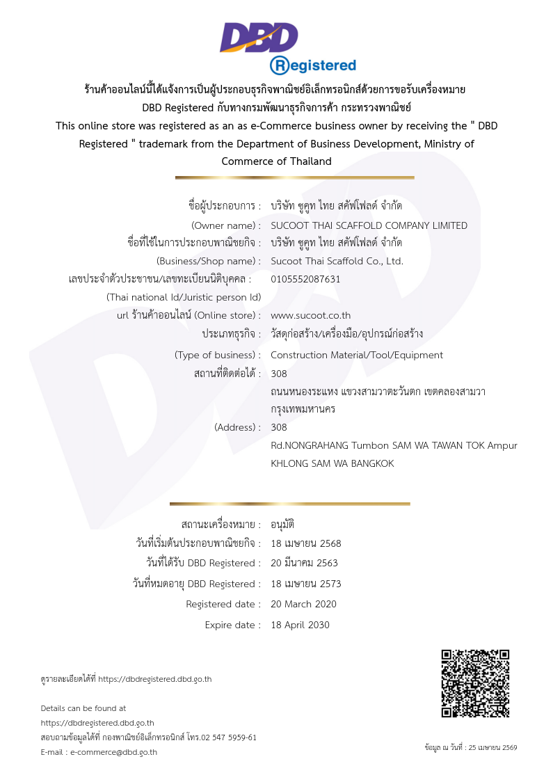 ปลอดภัยกว่า ด้วยนั่งร้านลิ่มล็อคของซูคูทที่ได้มาตรฐาน EN Standard และบริการออกแบบคำนวณโดยวิศวกรผู้เชี่ยวชาญงานนั่งร้านสอดคล้องกับข้อกำหนดของงาน จป.