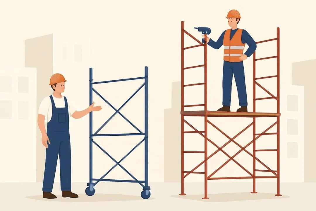 ซื้อนั่งร้าน เหมาะกับหน้างานที่มีรูปแบบคงที่ แต่หากต้องปรับเปลี่ยนบ่อย อาจต้องลงทุนเพิ่มเติมเพื่อซื้อนั่งร้านเสริม