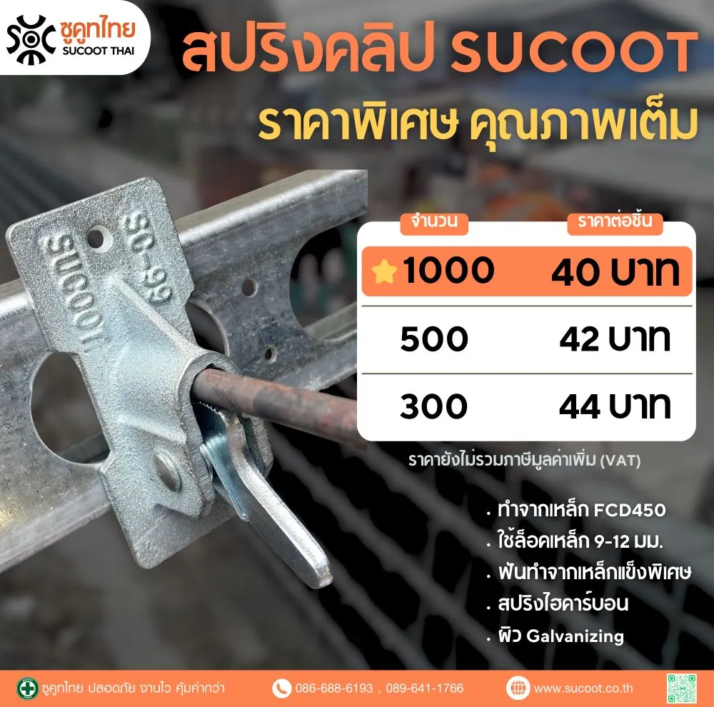 ได้!สปริงคลิปของซูคูทไทยใช้กับงานแบบหล่อโครงสร้างขนาดใหญ่ได้ เช่น บ่อน้ำสูง 10 เมตร หรือกำแพงกันรังสีหนา 3 เมตร เราก็เคยทำมาแล้วและออกแบบโดยวิศวกรให้รับแรงได้อย่างปลอดภัย